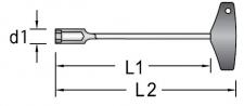 Haste em aço Gedore-Vanadium e cabo em polímero na cor azul padrão Gedore. Haste com acabamento niquelado e cromado. Chave com perfil de encaixe para parafusos com sextavado externo. Cabo ergonômico em formato T, que facilita ao usuário os movimentos manuais de aperto e desaperto.