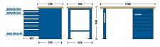 Módulo em chapa reforçada de aço especial com espessura: 1 mm, tampo em madeira de chapas compensadas multilâminas naval e suporte em chapas resistentes de aço especial no formato de U com espessura: 2 mm. Suporte e módulo com acabamento em pintura na cor azul padrão Gedore e tampo com proteção em pintura stain. Excelente ferramenta para auxiliar na organização do posto de trabalho ou de oficinas. Possui grande superfície de trabalho em madeira, apoiada por um suporte e um módulo ref. 32870 (7 gavetas). O suporte é fixado no tampo de madeira com parafusos 5/16 UNF x 25 mm, por meio de buchas presas na sua parte inferior, que permitem montagem rápida e segura. O módulo é fixado da mesma forma, com os parafusos colocados por dentro da primeira gaveta e fixados nas buchas. Para melhor organização das gavetas, permite utilização de Divisória transversal pequena código: 007.555, Divisória transversal média código: 007.556, Divisória transversal grande código: 007.557 e Divisória com ponte código: 007.554, a serem adquiridas à parte.