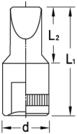 Aço Gedore-Vanadium. Soquete com acabamento niquelado e cromado, com ponteira escurecida. Para trabalhar com acessórios manuais com encaixe quadrado 6,35 mm (1/4”), conforme DIN 3120 - C 6.3, ISO 1174. Indicada para parafusos com perfil de encaixe tipo fenda simples.