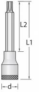 Aço Gedore-Vanadium. Soquete com acabamento zincado branco, com ponteira escurecida. Para trabalhar com acessórios manuais com encaixe quadrado 9,52 mm (3/8”), conforme DIN 3120 - C 10, ISO 1174. Indicada para parafusos com geometria GTX (perfil hexalobular) interno.