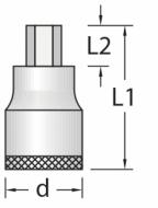 Aço Gedore-Vanadium. Soquete com acabamento niquelado e cromado/ zincado, com ponteira escurecida. Para trabalhar com acessórios manuais com encaixe quadrado 12,7 mm (1/2”), conforme DIN 3120 - C 12.5, ISO 1174. Indicada para parafusos com perfil de encaixe sextavado interno.