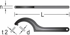 Aço Gedore-Vanadium. Acabamento escurecido. Chave gancho com pino para porcas com furos laterais, conforme DIN 1816.