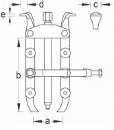 Aço especial. Garras com acabamento especial, fuso e fixadores escurecidos. Indicado para extração interna e externa, na desmontargem de peças, como mancais do eixo, rolamentos, pinhões e peças localizada em lugar de difícil acesso. Possui garras com duas extremidades funcionais. Possibilita múltiplas regulagens de profundidade de extração. Possui sistema de segurança contra abertura acidental das garras e/ou deslizamento.