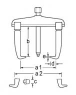 Aço especial. Garras com acabamento especial, fuso e fixadores escurecidos. Design robusto, para extração segura e rápida de polias, rodas e rolamentos. Sistema de engate rápido, facilita posicionamento e ajuste das garras e trava de segurança por meio de alavanca. Escala para ajuste uniforme das garras propicia a extração centralizada e otimização da força aplicada, mesmo quando altas capacidades de força de extração são aplicadas. A partir da inversão de suas garras facilita a extração de polias com apoio externo ou interno.