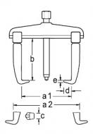Aço especial. Garras com acabamento especial, corpo, fuso e fixadores escurecidos. Corpo resistente a fortes tensões, possibilita trabalhos com o dobro das cargas de extração em relação ao modelo 1.04. Permite extração centralizada e otimização da força aplicada. O encaixe tipo T com engate rápido das garras garante altas transmissões de força. A ponta do fuso é intercambiável, esfera ou ponta, conforme a necessidade de uso. Possui sistema de acionamento de travas das garras por alavanca.
