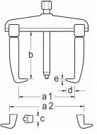 Aço especial. Garras e corpo com acabamento especial e fuso escurecidos. Design robusto, fabricado em aço forjado. A carga distribuída sobre três garras assegura um agarre mais seguro e extração balanceada. A partir da inversão de suas garras facilita a extração de polias com apoio externo ou interno.