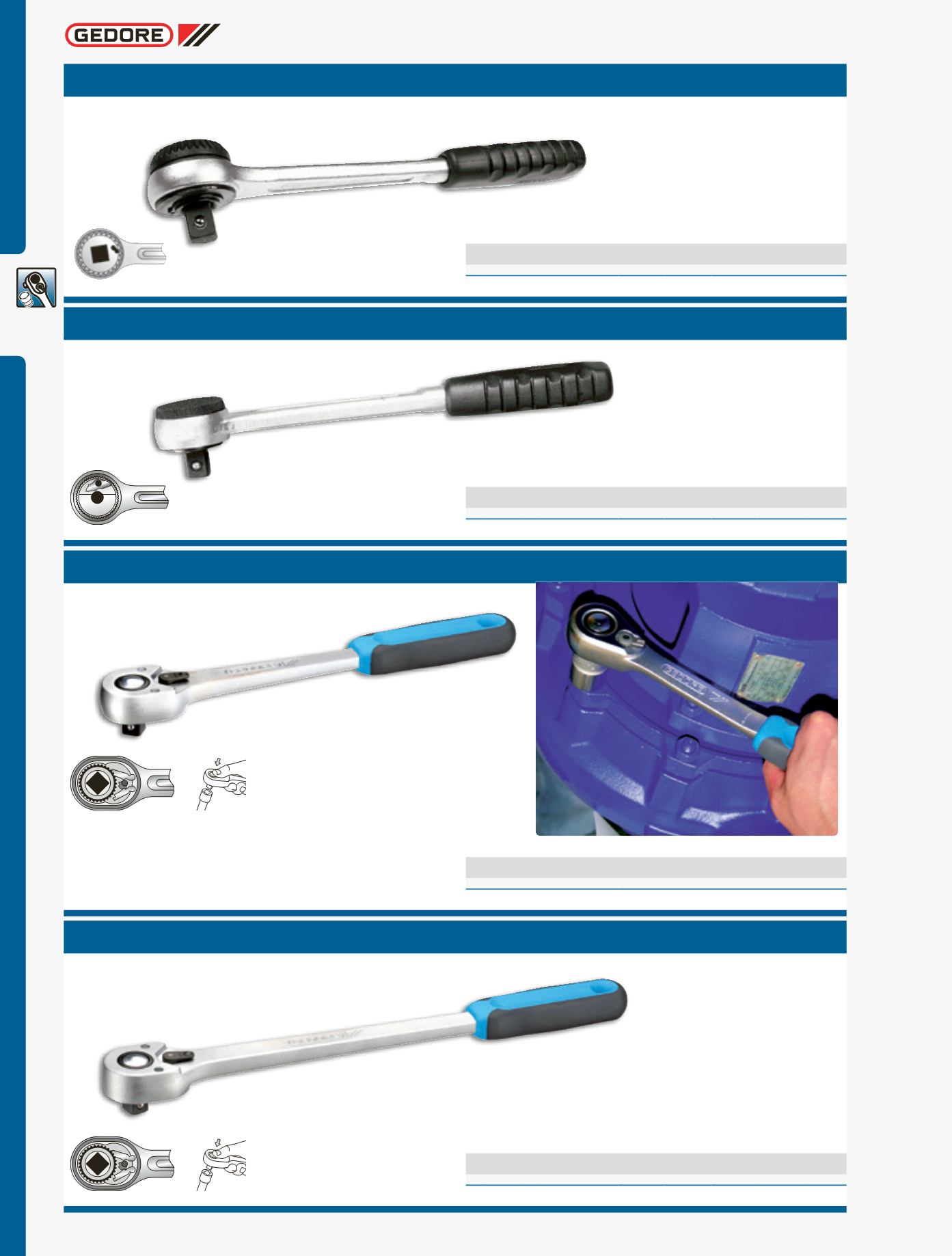 Aço Gedore-Vanadium. Niquelada e cromada. Alavanca de rever-